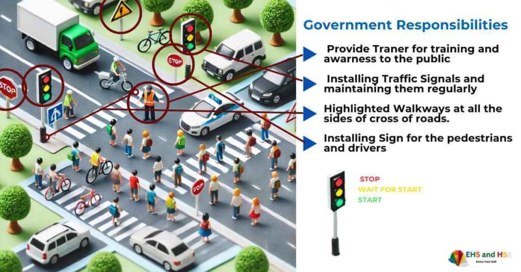 Governments play a crucial role in ensuring pedestrian safety while crossing roads. Here are some of the Government’s responsibilities according to pedestrian road crossing safety.